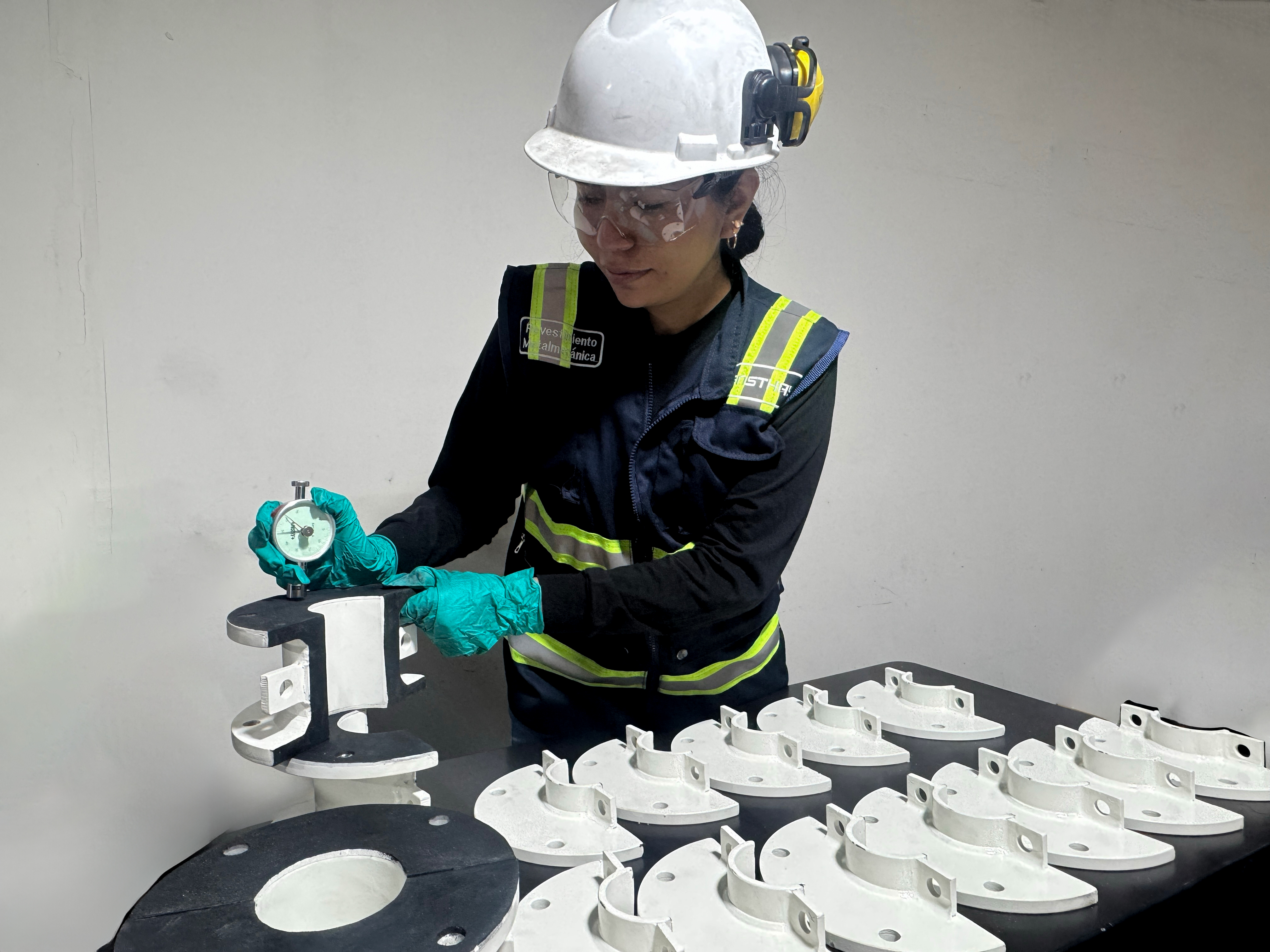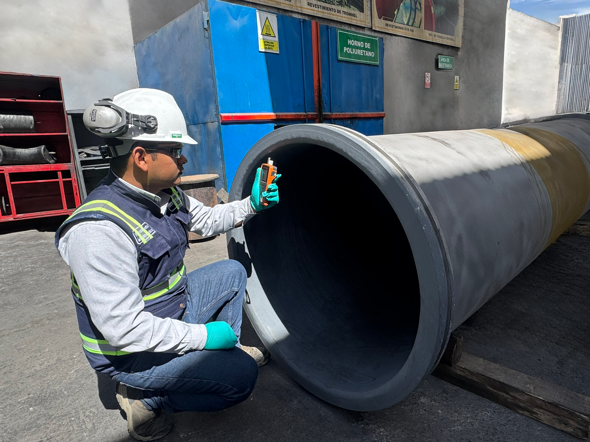 Este control se realiza en revestimientos de spools, poleas, codos, entre otros elementos usados en minería e industria. Una correcta medición permite detectar desviaciones a tiempo, evitar fallas prematuras y asegurar una aplicación eficiente del caucho, mejorando la vida útil del componente y su resistencia frente al desgaste o la abrasión.