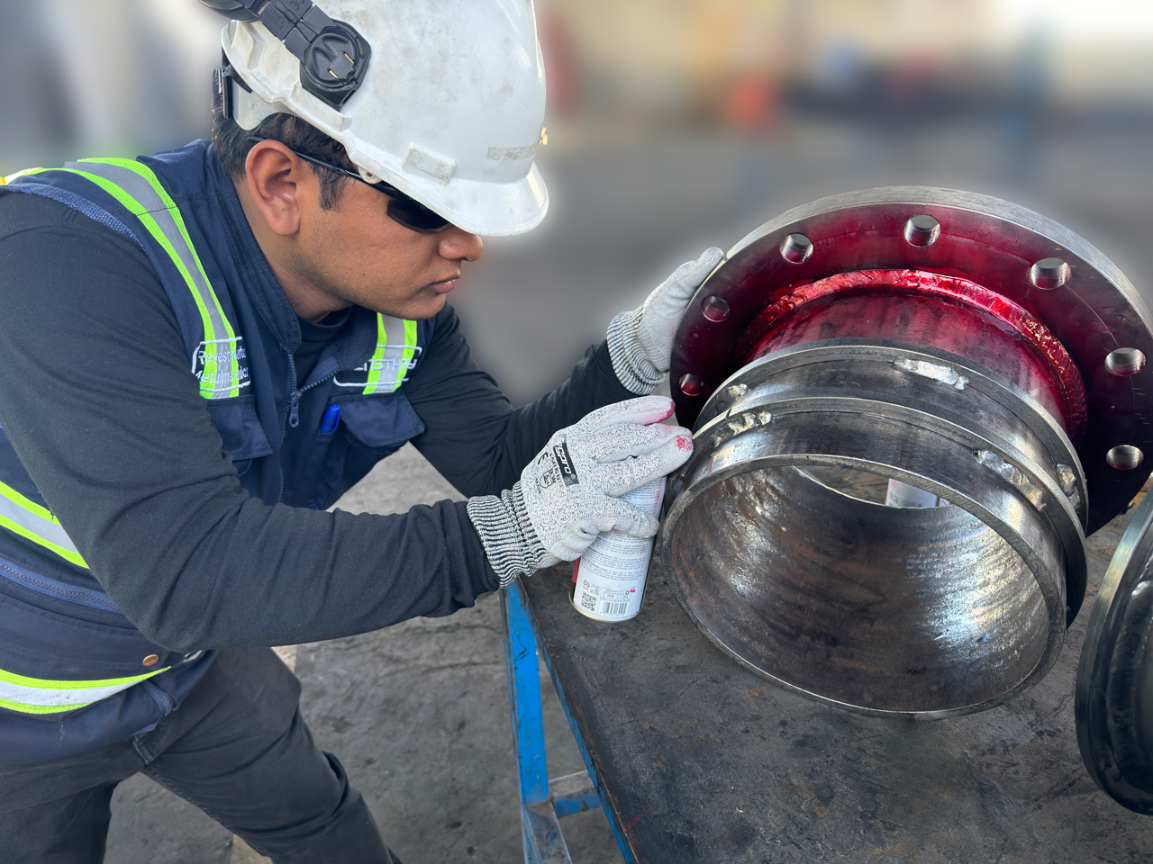 La rugosidad superficial es un parámetro esencial en el proceso de recubrimiento con caucho, ya que garantiza una adherencia óptima entre el metal y el elastómero. Para lograr esta rugosidad, realizamos la preparación de superficies mediante granallado con chorro abrasivo, cumpliendo con la norma NACE/SSPC-SP 5, que exige la remoción total de óxidos, cascarilla de laminación, pintura y contaminantes.