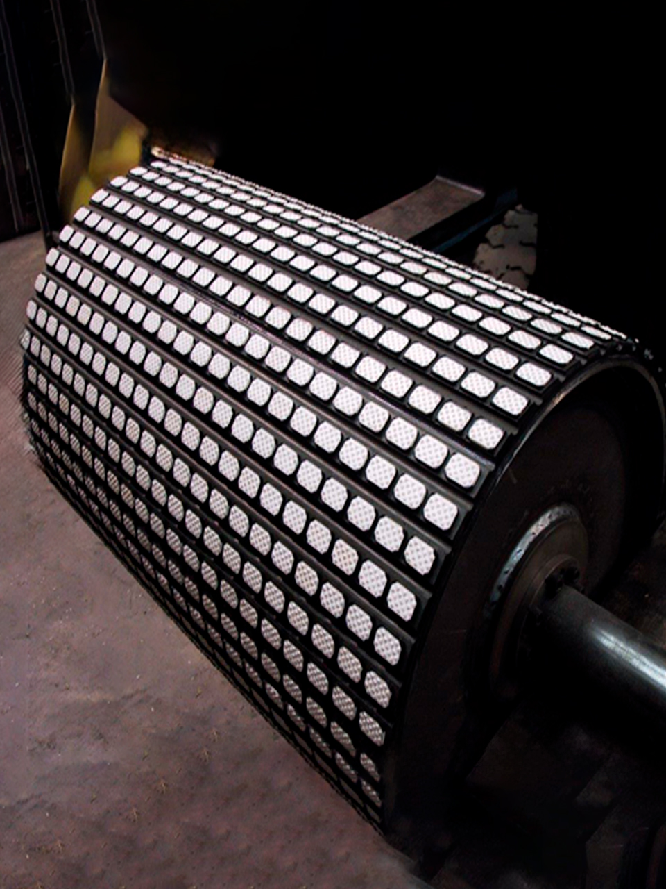 El caucho cerámico se utiliza como recubrimiento protector en equipos que operan en condiciones de desgaste. Es esencial para garantizar el rendimiento, la protección de componentes sometidos a condiciones extremas de abrasión e impacto, como poleas motrices, chutes de descarga y placas de desgaste.